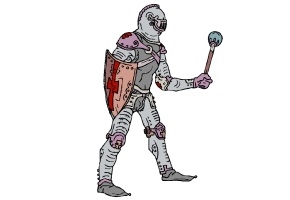 Morgenstern, Keule, Rost, Mike, Streitaxt und Hut. |